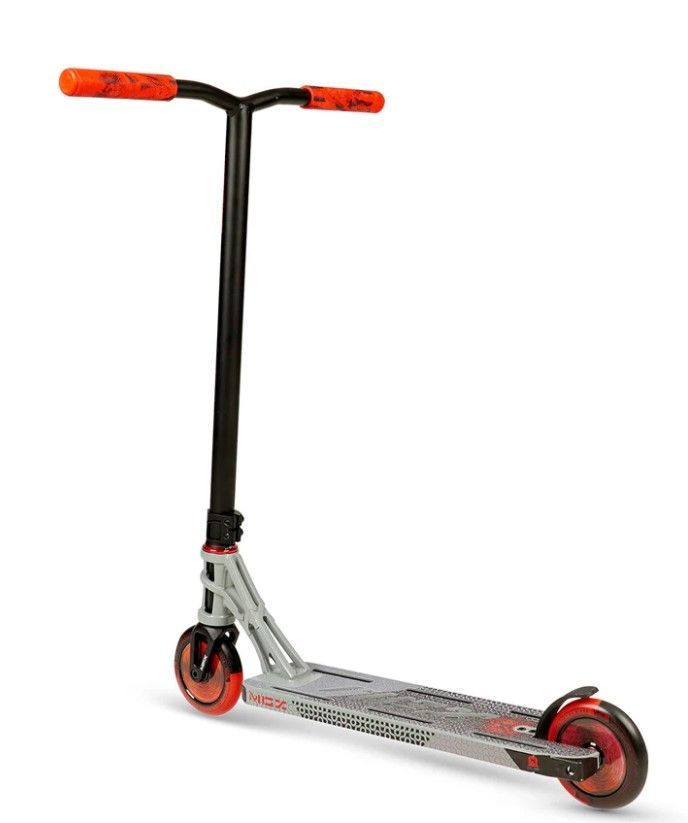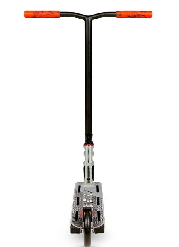 La trottinette freestyle MGX P2 redéfinit les standards de la performance avec des composants de qualité supérieure, prêts à l'emploi ! Disponible en finition peinture époxy, elle est idéale pour les riders débutants et intermédiaires à partir de 6 ans. Poids maximal de l'utilisateur : 100 kg. Âge recommandé : 6 ans et plus. Poids total : 3,30 kg. Poignées : Poignées Viral de 150 mm en TPR bi-composant ultra-doux avec motifs tourbillonnants et embouts de guidon en nylon Barre : MGP Low-riser 21 L x 23 H, acier chromoly japonais 4031, diamètre standard avec cannelures internes Collier de serrage : MFX X2 Cobra double en aluminium avec visserie de 6 mm Jeu de direction : MFX à faible friction intégré avec roulements étanches Fourche : MGP Voltage en aluminium sans filetage avec visserie de 6 mm / compression IHC standard Roues : Noyau creux holographique de 120 mm avec mélange de polyuréthane exclusif MGP bicolore Roulements : MGP K-2 Abec-9 chromés haute vitesse Plateau : 12,7 cm (L) x 49,5 cm (l), en aluminium 6061 extrudé concave cannelé, traité thermiquement en deux phases, avec douille de direction intégrée MGX « X » soudée à la machine Frein : Frein composite Blitz MGX V2 Ruban adhésif antidérapant : Grip MGX ultra-résistant recouvrant toute la surface du deck, avec découpe pro Finition : Revêtement en poudre durable avec décalcomanie à l'eau MGX recouvrant l'intégralité du pont Détails : Roues à noya