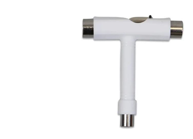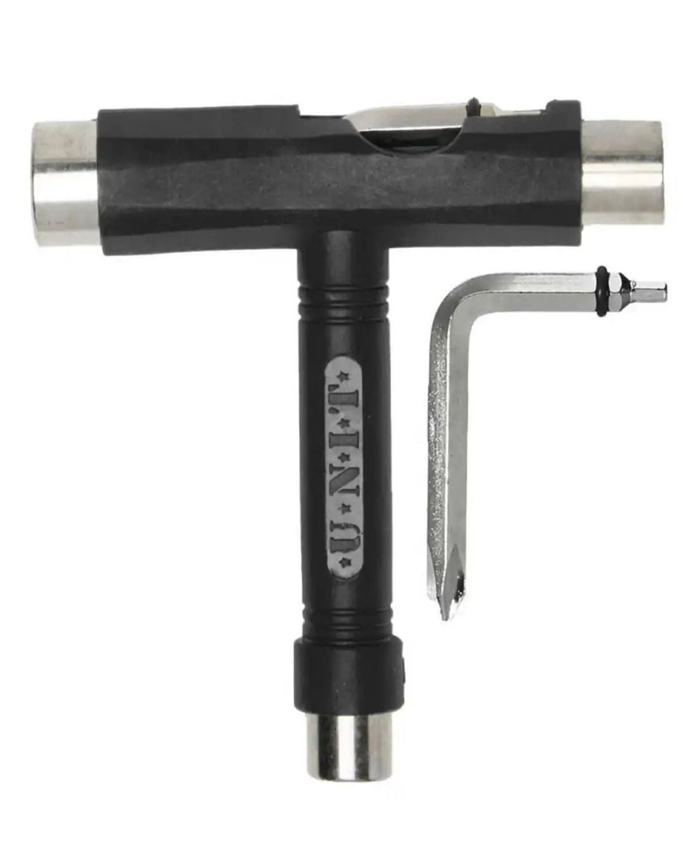 Un outil de skateboard multifonction d'Unit gère tout pour assembler votre ensemble et le maintenir parfaitement réglé avec une construction en plastique robuste et des douilles métalliques. Doté de douilles encastrées pour ajuster la visserie, les pivots et les écrous d'essieu, cet outil utilitaire en T est équipé d'une clé tournevis amovible compatible avec les visseries cruciformes et Allen. Outil tout-en-un pour skateboard de Unit. Douilles 9/16, 3/8 et 1/2 incluses. Tournevis Allen et Phillips coulissants amovibles.