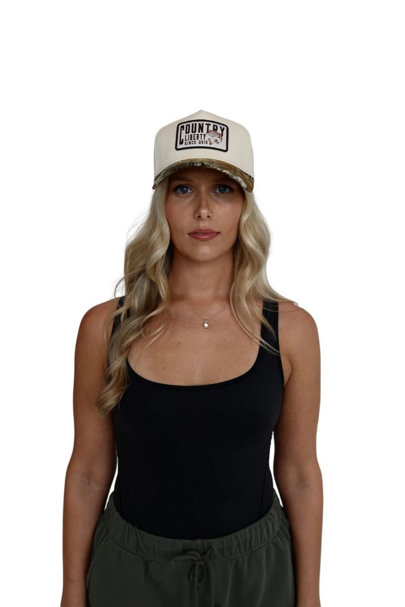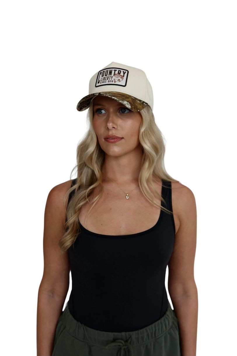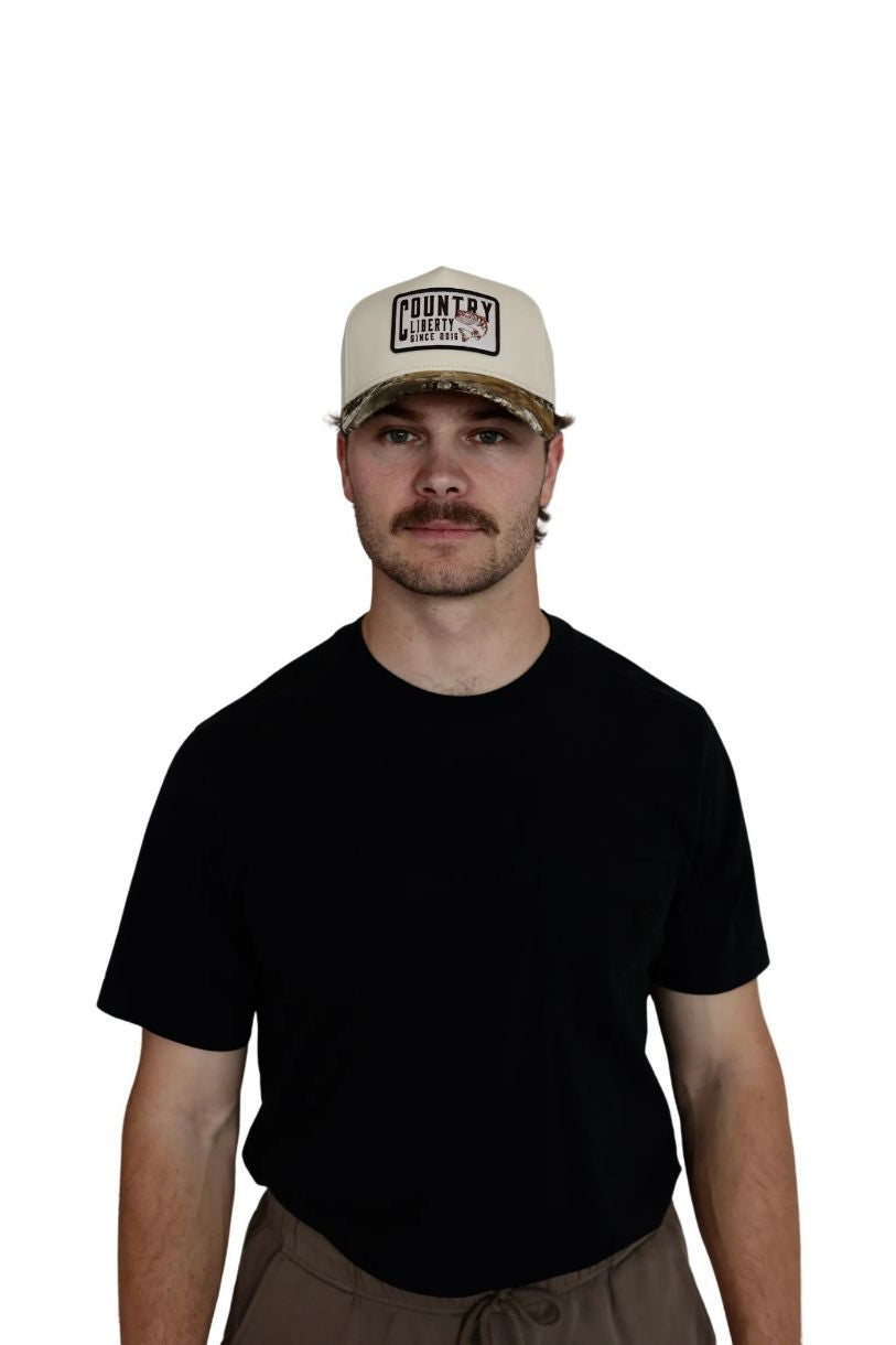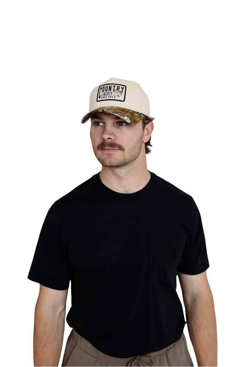 Notre casquette camouflage bicolore la plus vendue, désormais ornée d'un nouvel écusson d'inspiration vintage. Avec sa calotte crème épurée et sa visière camouflage robuste, elle est idéale pour les matins matinaux, les soirées tardives et toutes vos activités. Un indispensable sur le terrain, en voyage ou au bar. Motif bicolore crème et camouflage Couronne structurée en forme de A Écusson avant d'inspiration vintage « Country Liberty Since 2015 » Broderie détaillée représentant un cerf Fermeture à pression réglable Taille unique convenant à la plupart des têtes