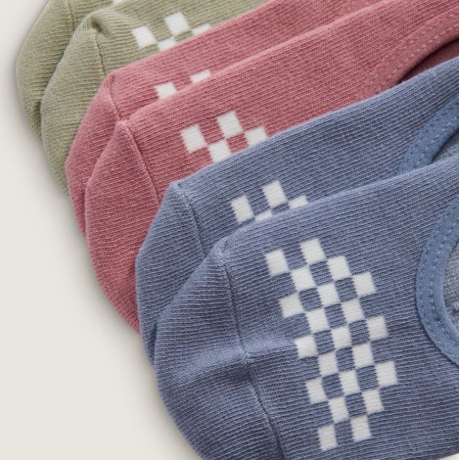 Lot de 3 paires de chaussettes mi-mollet rembourrées à motifs à damier. Coupe basse, style invisible Art jacquard à damier et logo Tissu composé à 74 % de coton, 24 % de nylon et 2 % d'élasthanne