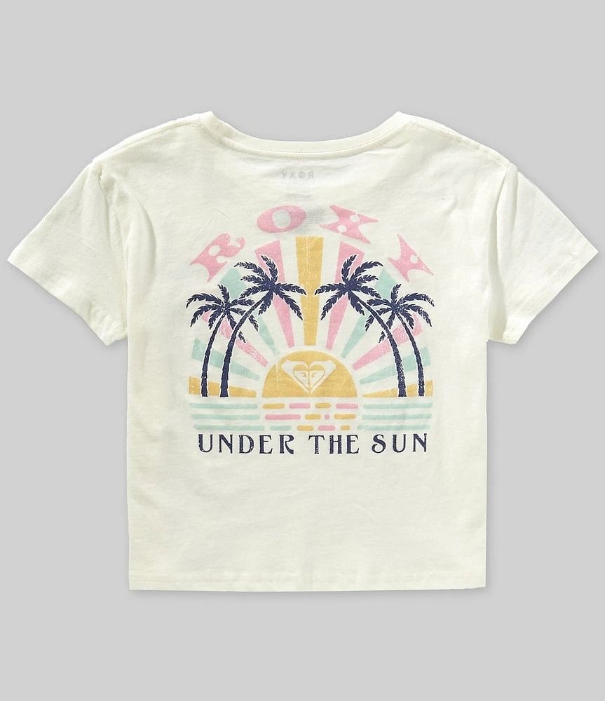 Grand logo Roxy, texte Under The Sun, palmiers et rayons de soleil sérigraphiés au dos