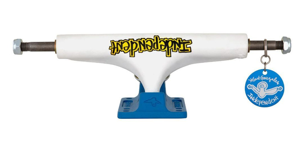 Trucks Mark Gonzales Pro Stage 4 de l'entreprise indépendante de trucks, dotés d'un support imprimé blanc mat, d'une embase bleue à texture fine estampillée Shmoo, de coussins jaunes imprimés avec logo, de ferrures argentées et d'une étiquette porte-clés en aluminium gravée au laser. Rien ne vaut un Stage 4 Indy . Les Stage 4 sont dotés du design original du Stage 4, avec un support à aile unique sur une embase universelle à 6 trous. Grâce à leur géométrie Indy classique et éprouvée, les Stage 4 sont ultra-rapides et réactifs. Équipés de coussins originaux parfaitement dimensionnés pour une stabilité, un rebond et une accroche supérieurs. Fabriqués avec des matériaux et des procédés de fabrication modernes, les Stage 4 sont plus robustes et plus durables que les originaux ou toute imitation. Hauteur : 55 mm pour des performances optimales et un dégagement de roue pour les roues de 56 mm et moins. Cintre et plaque de base en aluminium A356 T6 Le meilleur alliage d'aluminium léger traité thermiquement à l'état T6 pour plus de résistance, de durabilité et de sensation de meulage. Essieu en acier chromoly SCM435 La plus haute qualité et durabilité disponible. Pivot de force de grade 8 Ne casse jamais, ne plie jamais. Coussins d'origine 90a avec logo Gonz imprimé Formule à rebond ultra élevé, dimensionnée pour s'adapter aux étapes 1 à 7. Plaque de base universelle à 6 trous avec schémas de montage anciens et nouveaux.
