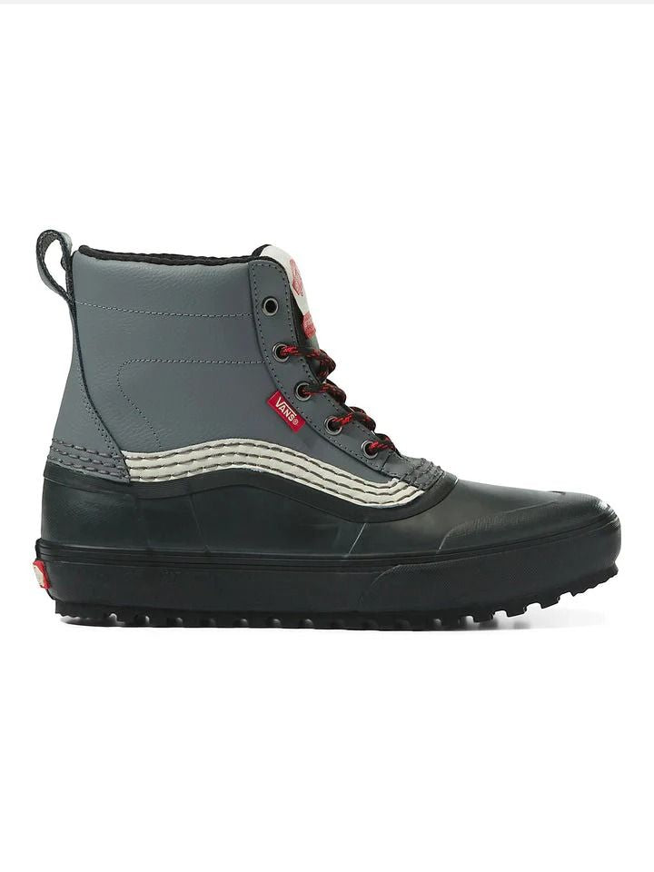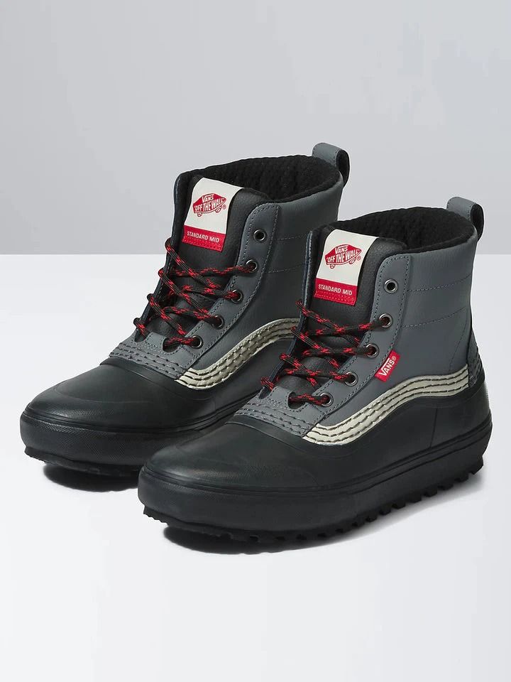 Pratique, empaquetable et portable au bar, la Standard Mid Snow MTE est une version downsizée de la botte de neige Standard Snow MTE, le best-seller de Vans. Avec une partie inférieure vulcanisée imperméable, une construction étanche aux coutures, une semelle extérieure Standard Snow MTE dotée du caoutchouc tout-terrain All-Trac™ et un pack d'isolation d'un poids de 100 grammes, le style classique de Vans et les chaussures pour les intempéries hivernales au quotidien ont enfin convergé. Cette botte mid top est fabriquée avec une empeigne en cuir et en synthétique.