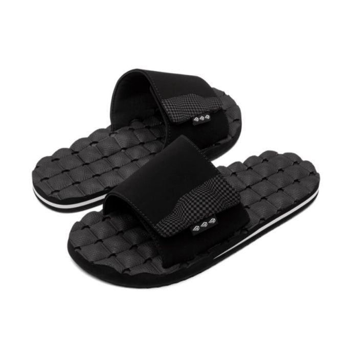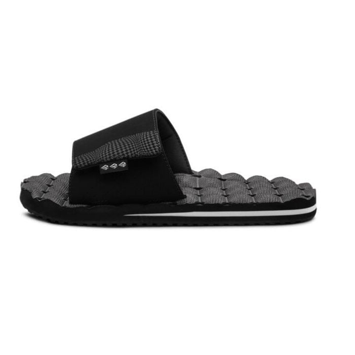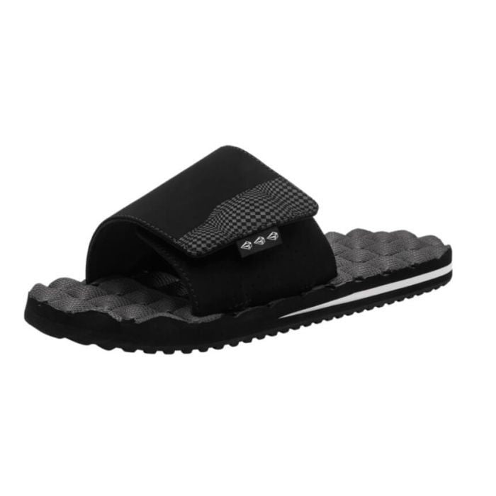 Enfilez la Recliner Slide Sandal et laissez votre stress fondre. Conçues en collaboration avec le surfeur professionnel Jack Robinson, ces sandales sont équipées du footbed Recliner Comfort Foam moulé pour un ajustement d'un confort suprême Sangle supérieure ajustable Dessus en nubuck synthétique résistant à l'eau Doublure en Lycra rembourrée douce Semelle extérieure en caoutchouc moulé non marquante