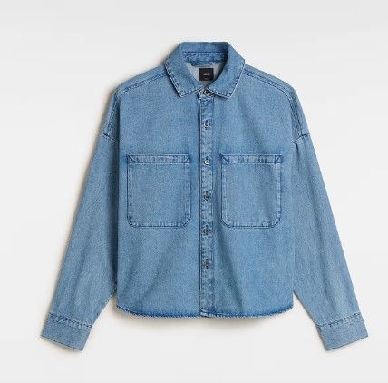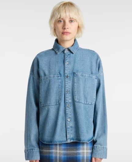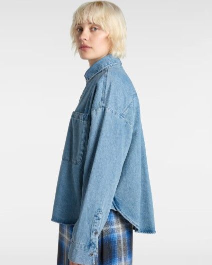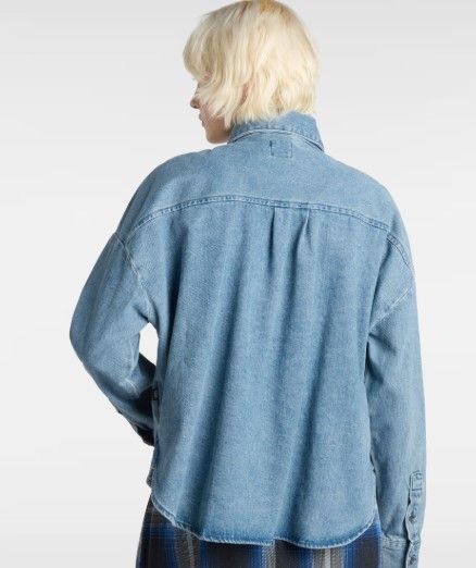 La chemise en denim tissé à manches longues Antica Boxy possède une fermeture boutonnée sur le devant et deux poches poitrine. Sa coupe est carrée. 100% COTTON