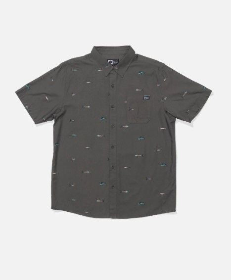 60 % coton / 40 % viscose Mélange de coton mi-lourd avec imprimé intégral Étiquette tissée sur la poche poitrine gauche Boutons en résine de marque Lavage à la main délicat