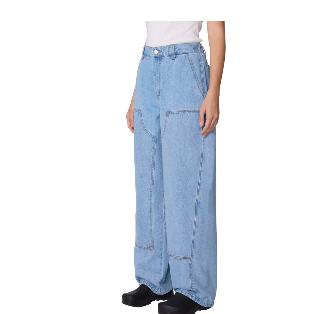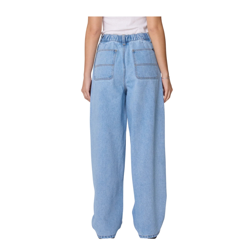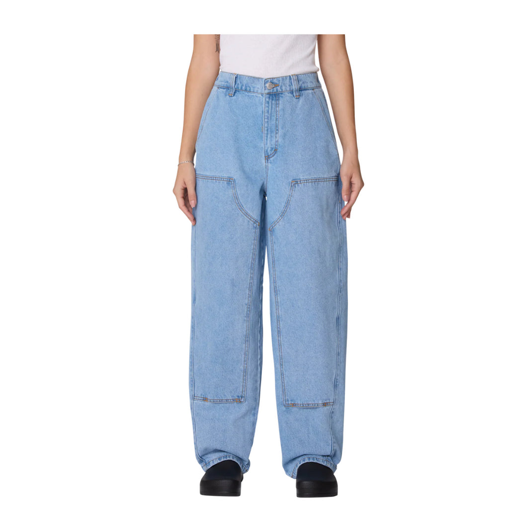 Le jean Obey W Leah III Baggy Double Knee Denim combine influence workwear et esprit streetwear contemporain. Confectionné en denim 100 % coton de 13,5 oz, il propose une coupe baggy confortable avec jambe fuselée et ouverture de 19”. Sa taille mi-élastiquée au dos assure un ajustement flexible, tandis que la fermeture à bouton métallique et braguette zippée garantit solidité et praticité. Doté de poches latérales inclinées, de poches plaquées à l’arrière et d’empiècements renforcés aux genoux, il allie durabilité et style. L’étiquette Obey sur la poche arrière droite signe son identité. Proposé dans un lavage cirrus, il offre une esthétique authentique et urbaine.
