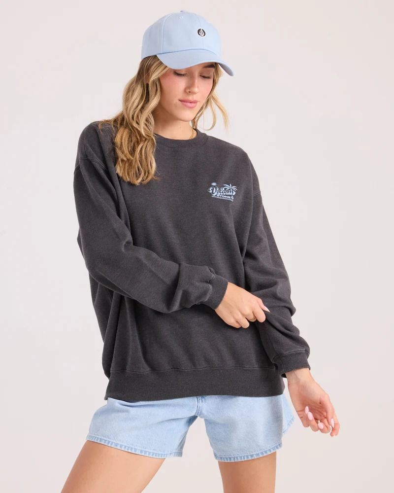 Le pull polaire Levy Crew offre un confort décontracté et des épaules tombantes dans un coloris noir vintage, confectionné dans un molleton doux en mélange de coton. Ses poignets et son ourlet côtelés lui confèrent une allure impeccable, tandis que son imprimé audacieux de palmiers au dos affirme son style, aussi bien en ville qu'en bord de mer. Facile à enfiler, difficile à quitter. Sweat-shirt en polaire à col rond et épaules tombantes Col rond Graphique