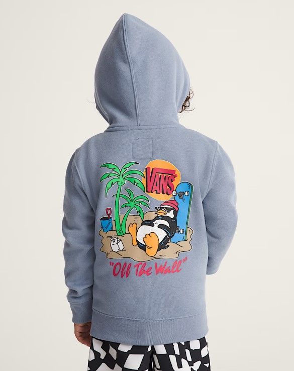 Sweat à capuche zippé en polaire mi-épaisse avec un motif de pingouins décontracté pour les petits enfants. Laissez les enfants exprimer leur propre version du style « Off The Wall » avec ce sweat à capuche zippé, qui associe une polaire douce de poids moyen et les logos classiques de Vans à un motif pingouin décontracté pour un look amusant et facile à porter toute la journée. Sweat à capuche zippé avec fermeture éclair intégrale pour une superposition facile en toutes circonstances. Impression sérigraphique pour un design durable Poche avant de style kangourou Logo Vans imprimé sur la poitrine et motif de pingouins ludique au dos Coupe standard pour une sensation naturelle et confortable 56 % coton, 44 % polyester
