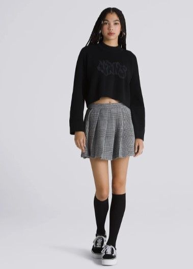 Ce sweat-shirt court à col montant est doté de manches cloche pour une touche de sophistication. Son logo Vans® en tricot à cils discret sur la poitrine ajoute une touche de style subtile. 63 % acrylique, 33 % nylon, 4 % élasthanne. Pull court à col montant. Manchon cloche. Logo tricoté en cils.