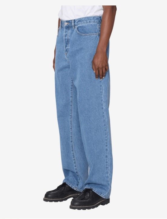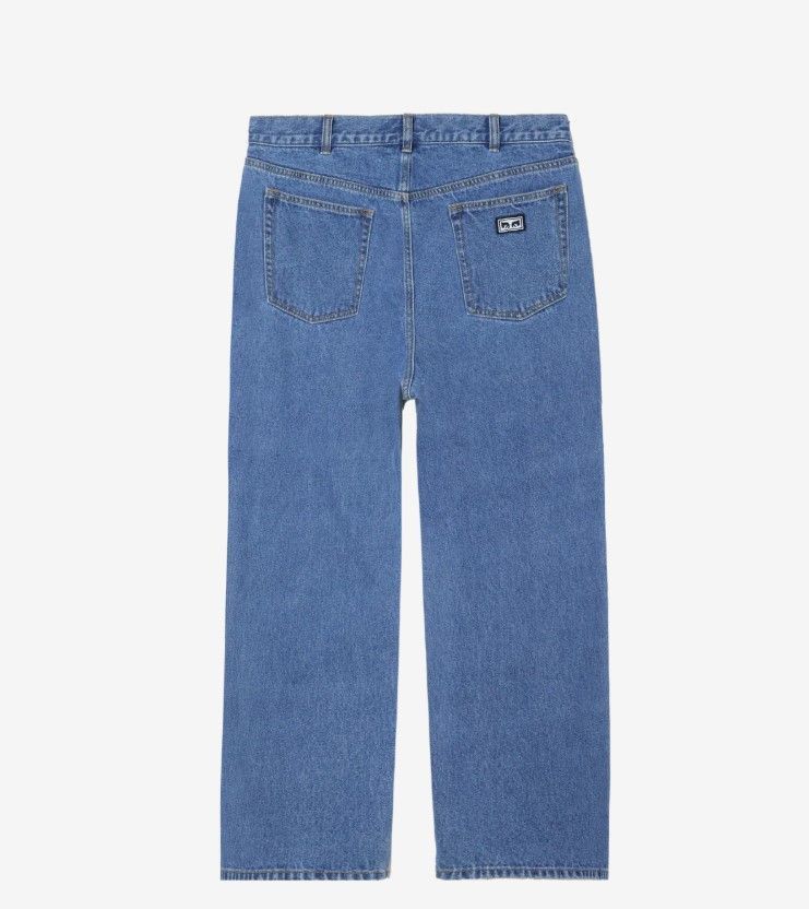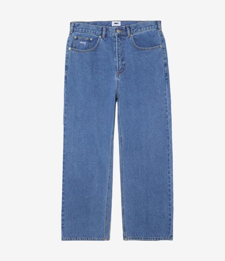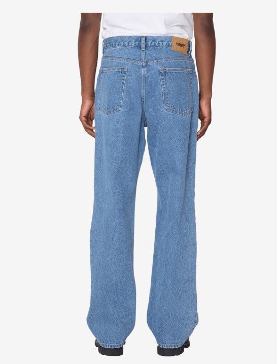 FERMETURE À BOUTON AVEC BAGUE À FERMETURE ÉCLAIR STYLE DENIM 5 POCHES POCHE À MONNAIE AVEC BRODERIE DU LOGO ÉTIQUETTE OBEY SUR LA POCHE ARRIÈRE 100% COTON DENIM 13,5 OZ COUPE AMPLE OUVERTURE DES JAMBES 20° JAMBE EFFILÉE