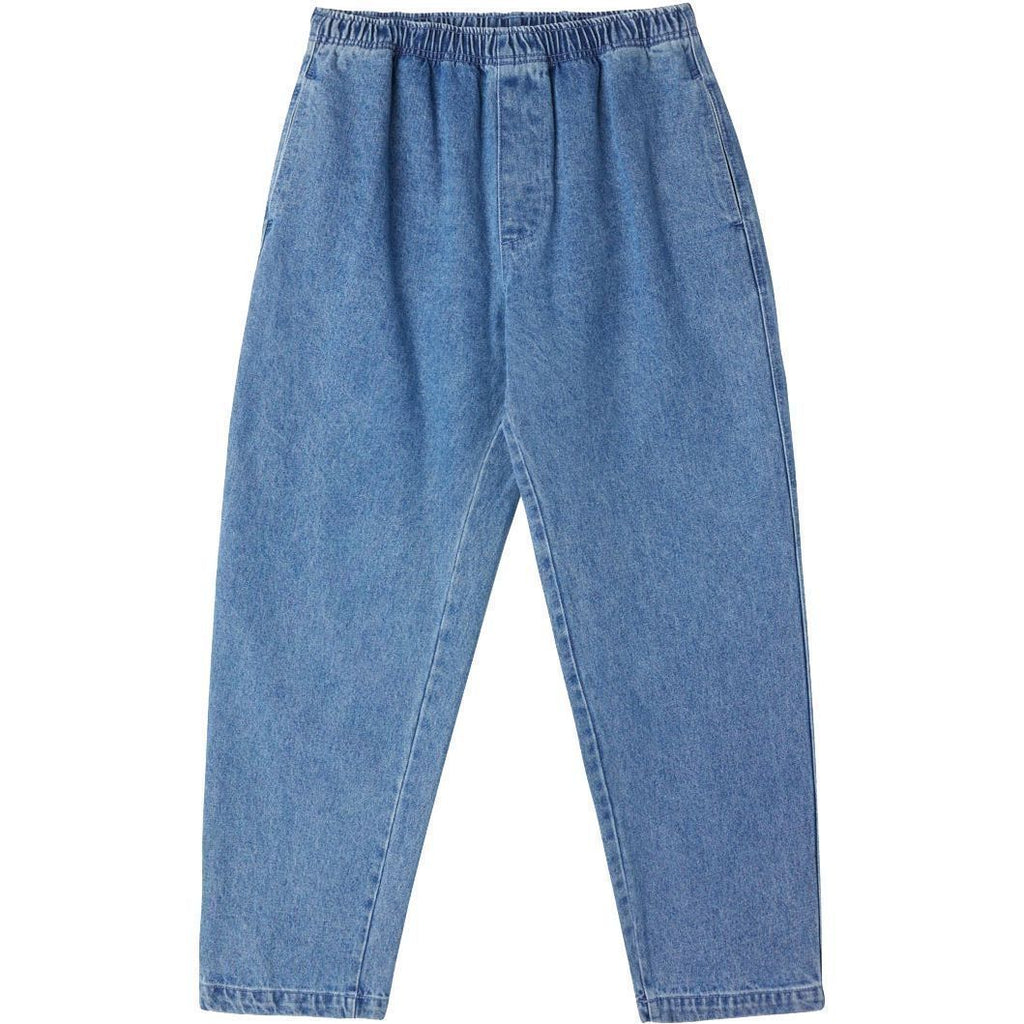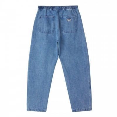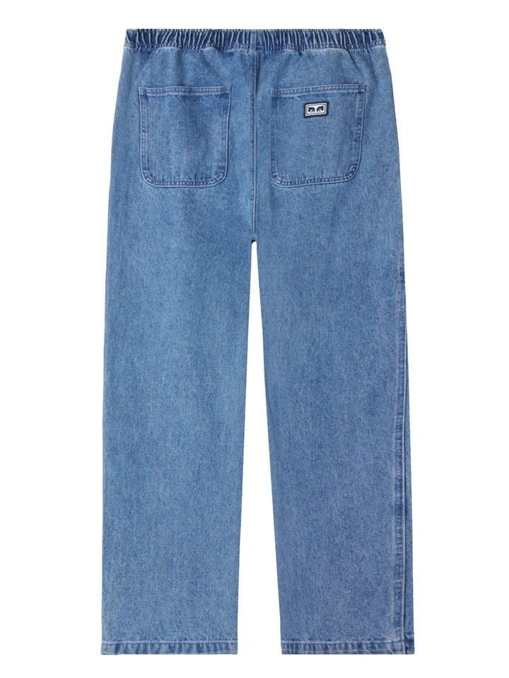 PANTALON EN DENIM AVEC TAILLE ÉLASTIQUE • TAILLE ÉLASTIQUE COMPLÈTE AVEC CORDON DE SERRAGE ARRONDI • FAUSSE BRAGUETTE • POCHES LATÉRALES SUR LE DEVANT • ÉTIQUETTE OBEY EYES SUR LA POCHE ARRIÈRE DU CÔTÉ DROIT • 100 % COTON • 13,5 OZ • OUVERTURE DE JAMBE DE 17,5 • JAMBE DROITE