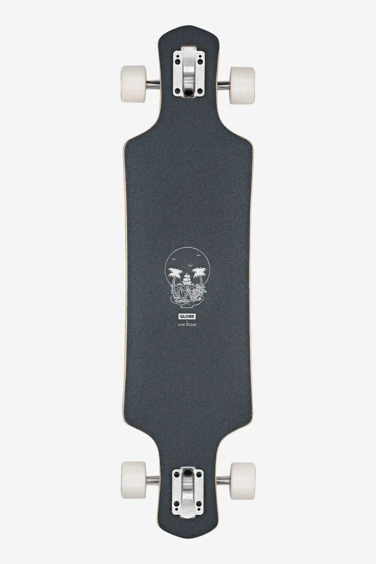 Détails et fonctionnalités 37,5 x 10 x 28,25 WB Bambou + érable dur Léger concave latéral Trucks Kingpin inversés inclinés de 180 mm Roues à noyau souple 70 mm 78a Roulements ABEC 7 Griptape noir avec art supérieur Artiste vedette Jamie Browne