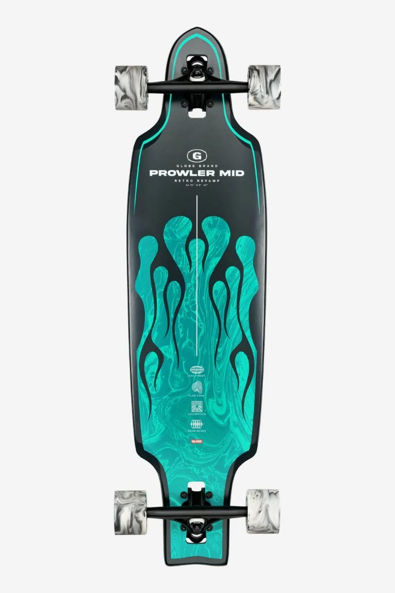 Dominatrice des collines et des trajets scolaires. La planche de longboard Prowler Mid 34 en coloris Green Flames est une version raccourcie de la Prowler, avec un tail plus large et une forme moins fuselée. Fabriquée en érable dur Resin-8, elle présente un rocker concave légèrement en « W » pour un centre de gravité bas et une excellente adhérence, ainsi qu'un grip noir orné d'un motif sur le dessus. 34,75 po x 9,0 po x 25 po (empattement) Plateau en érable dur Resin-8 Concave rocker avec un léger W pour un centre de gravité bas et une meilleure adhérence Trucks Slant reverse kingpin de 180 mm Roues Conical Cruiser de 70 mm et 78a Grip noir avec motif