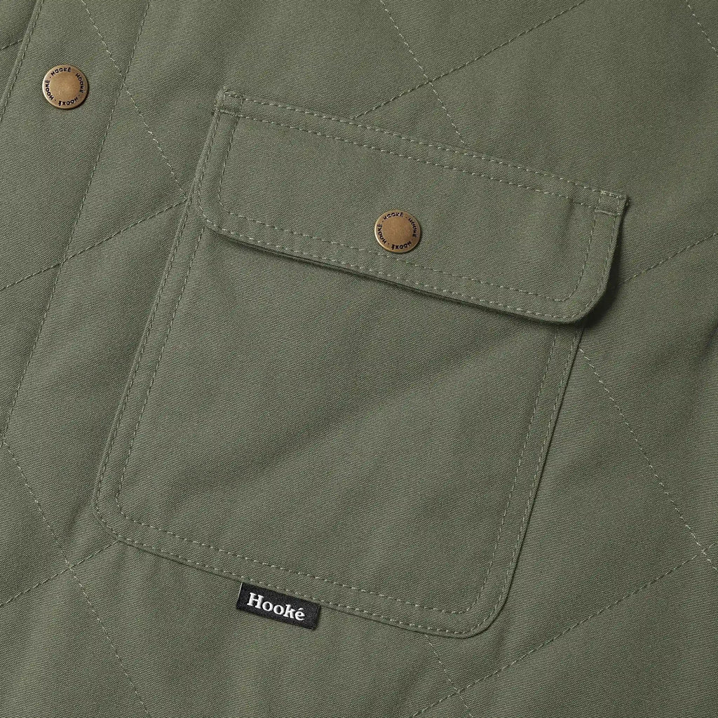 L'intérieur contrasté et l'isolation 80 g/m², entièrement composée de polyester 100 % recyclé, vous gardent au chaud par temps froid tout en apportant une touche d'originalité. Les avant-bras renforcés garantissent une durabilité accrue, tandis que les deux poches à rabat et les deux poches chauffe-mains offrent un espace de rangement pratique pour vos essentiels. Une boucle d'attache dissimulée permet d'attacher discrètement des outils ou des accessoires, offrant ainsi une fonctionnalité supplémentaire lors de vos activités de plein air. Les poignets réglables assurent un ajustement personnalisé et confortable, tandis que l'étiquette Hooké signature confère une touche d'authenticité à cette surchemise intemporelle. Certifiée GRS et Oeko-Tex® standard 100, cette surchemise reflète notre engagement en faveur de pratiques de fabrication respectueuses de l'environnement. Que vous exploriez la nature ou que vous profitiez simplement d'un bon moment autour d'un feu de camp, cette surchemise matelassée vous accompagnera partout où vos aventures vous mèneront. • Toile 7,5 oz composée à 65 % de polyester recyclé et à 35 % de coton. • Doublure intérieure contrastée et isolation 80 g/m² en polyester 100 % recyclé. • Avant-bras renforcés pour une durabilité accrue. • 2 poches poitrine à rabat et 2 poches chauffe-mains. • Boucle d'accessoire cachée pour attacher des outils. • Poignets ajustables. • Étiquette signature Hooké. • Certifié GRS et Oeko-Tex® standard 100.