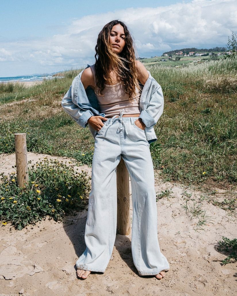 Pantalon à jambes larges Immeuble de moyenne hauteur Entrejambe de 29 pouces Ceinture plate sur le devant avec cordon de serrage Ceinture élastique au dos poches avant Étiquette tissée