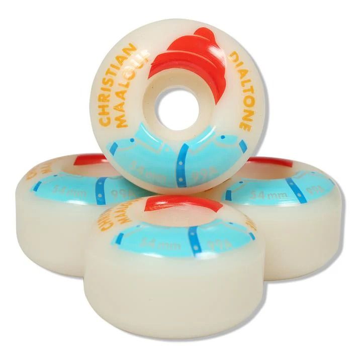 La société Dial Tone Wheel Co. propose une large surface de roulement et un bord carré et effilé pour une meilleure stabilité et un meilleur contrôle. Parfait pour les grinds, les surfaces glissantes ou pour dévaler les pentes les plus dures. 99a Roue professionnelle Christian Maalouf Œuvre de Cosme Fernandez 54 mm Coupe standard Uréthane 99a