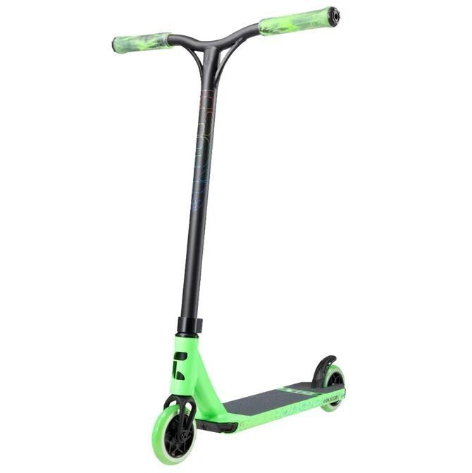 La nouvelle COLT améliorée est enfin disponible . Place à la Série Cinq, prête à être lancée en 2022. Toutes les trottinettes complètes COLT font partie de la gamme Envy depuis six ans, et cette série les propulse encore plus haut et confirme sa réputation de petite arme de la gamme. Cette année, Envy a réuni des pièces de haute qualité issues de la célèbre gamme Prodigy, à un prix exceptionnel. Cette trottinette est idéale pour les riders débutants et intermédiaires qui s'initie au skatepark et souhaitent perfectionner leurs figures. Le Series 5 est équipé d'un guidon en chromoly de haute qualité, issu du Series 7 Prodigy, à la hauteur idéale pour les jeunes pilotes. Ultra-souples et confortables, les poignées en TPR offrent une grande durabilité et, avec leurs 160 mm, offrent une couverture parfaite, désormais disponibles dans de nouveaux coloris Smoke. Le collier de serrage en aluminium 6061 à deux boulons de 5 mm offre une excellente adhérence tout en restant léger. Le Colt est désormais équipé de la légendaire fourche P2, directement issue de la gamme Prodigy Series 8, compatible avec des roues jusqu'à 125 mm. Les roues Diamond 6063 de 110 mm utilisent le meilleur polyuréthane 86a avec un collage haute performance pour réduire le risque de dé-moyeu. Le plateau est en aluminium extrudé 6061-T6, peint avec des finitions de haute qualité, avec un tube de direction intégré à 82,5 degrés et un jeu de direction entièrement étanche. Le Colt est doté d'un système de freinage en nylon Envy, d'une plaque avant et d'inserts arrière. Hauteur totale : 815 mm/32 Longueur totale : 680 mm/26,8 Hauteur de la barre : 580 mm/22,8 Largeur de la barre : 520 mm/20,5 Longueur du pont : 495 mm/19,5 Largeur du pont : 120 mm/4,75 Type de compression : IHC Espace pour les pieds : 350 mm/13,8