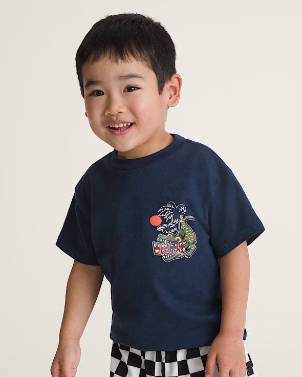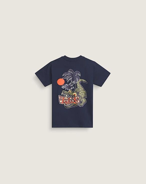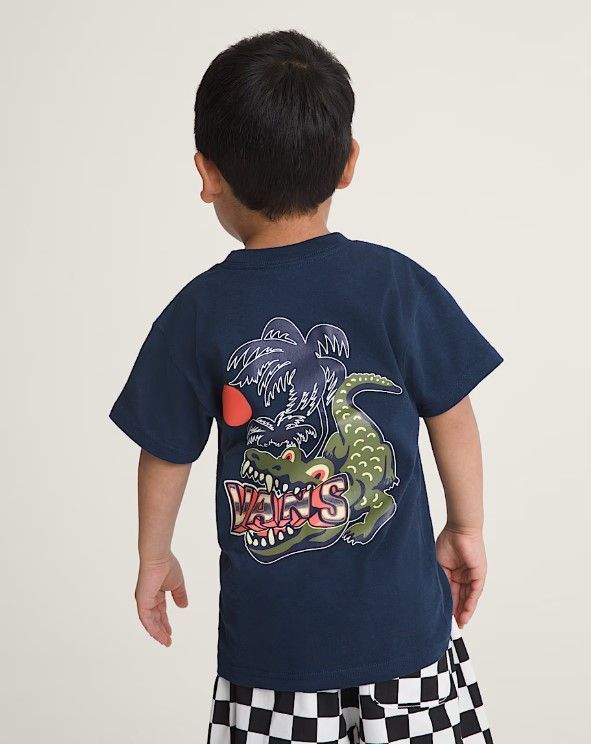 T-shirt léger en jersey avec un motif crocodile audacieux, conçu pour les jeux des petits enfants. Dynamisez leurs moments de jeu avec un motif de crocodile affamé qui habille le logo Vans sur un t-shirt en jersey doux et léger, pour le plus grand confort des petits qui peuvent se défouler toute la journée. Chemise à col rond pour un look classique Manches courtes pour un style décontracté au quotidien Un imprimé crocodile audacieux à l'avant et à l'arrière apporte une touche ludique à n'importe quelle tenue. Coupe classique pour un confort optimal toute la journée et une superposition facile 100% coton