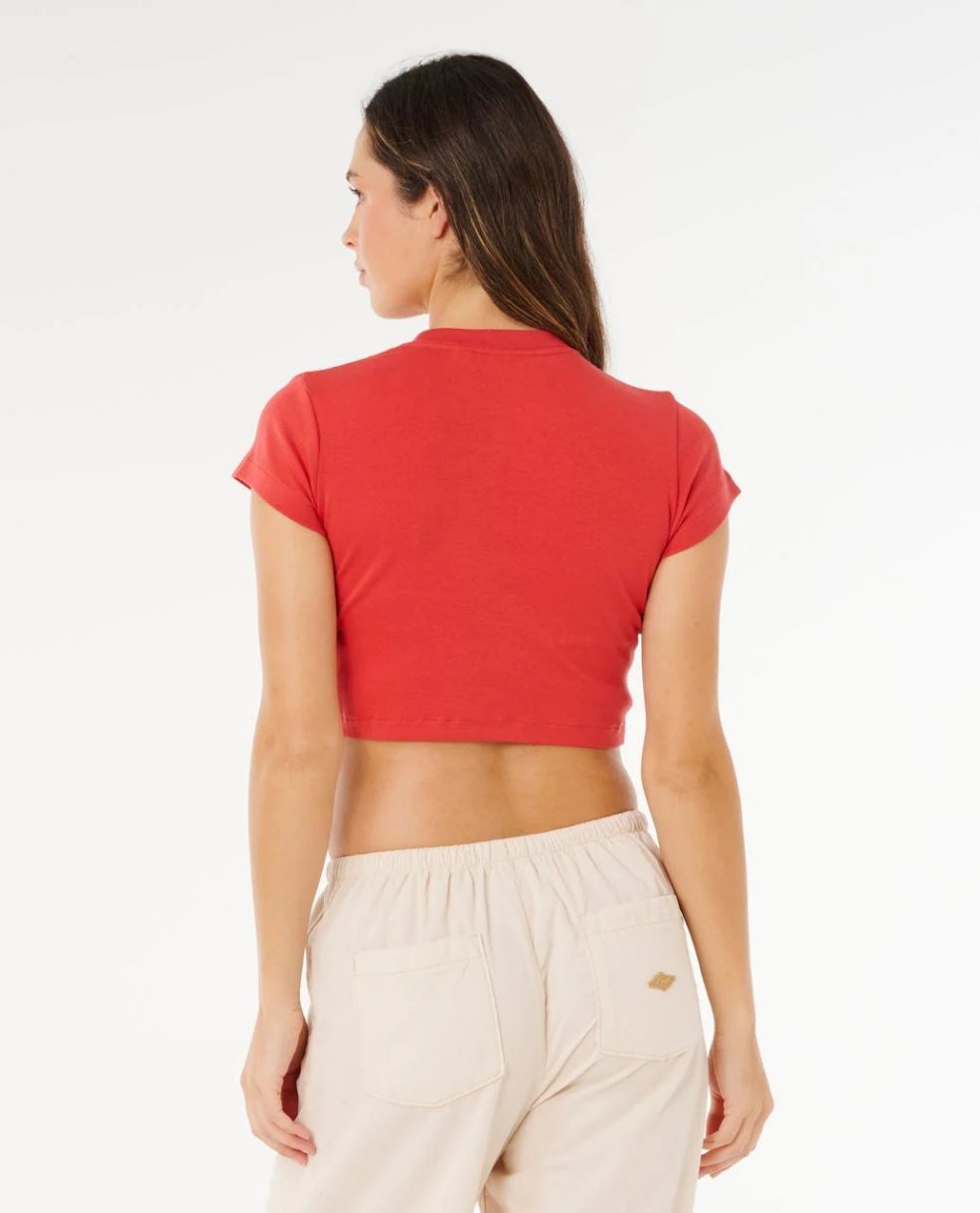 La coupe baby tee et les détails brodés font du baby tee Pacific Coast un incontournable du surf, agrémenté d'une étiquette drapeau tissée pour un look épuré et moderne. 98 % coton, 2 % élasthanne