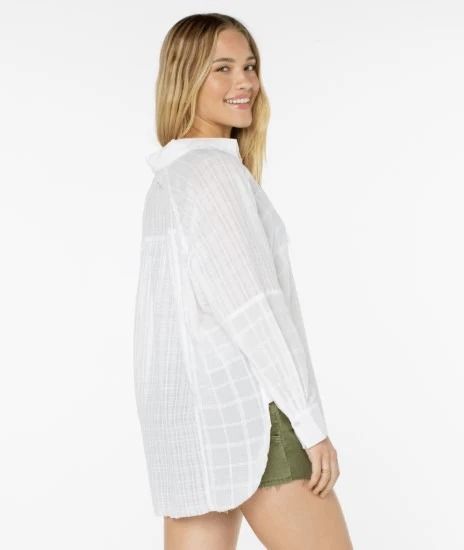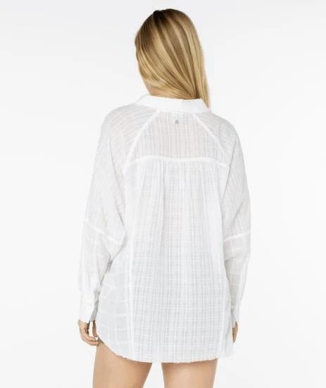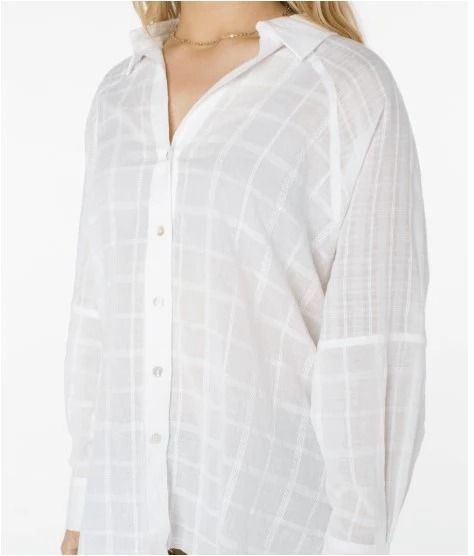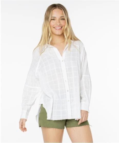 La chemise Out of Office revisite avec humour un classique de l'été. Avec son imprimé quadrillé transparent et sa fermeture boutonnée, cette pièce est parfaite seule ou superposée à votre bikini préféré. Manches longues