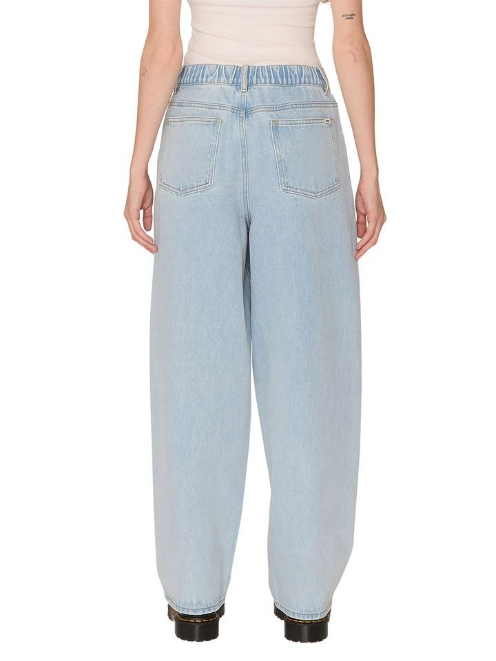 Pantalon de travail en jean ample Fermeture à bouton-pression avec braguette zippée Élastique dorsal complet Style denim à 5 poches Poche plaquée au dos 100% coton Coupe ample Jambe conique