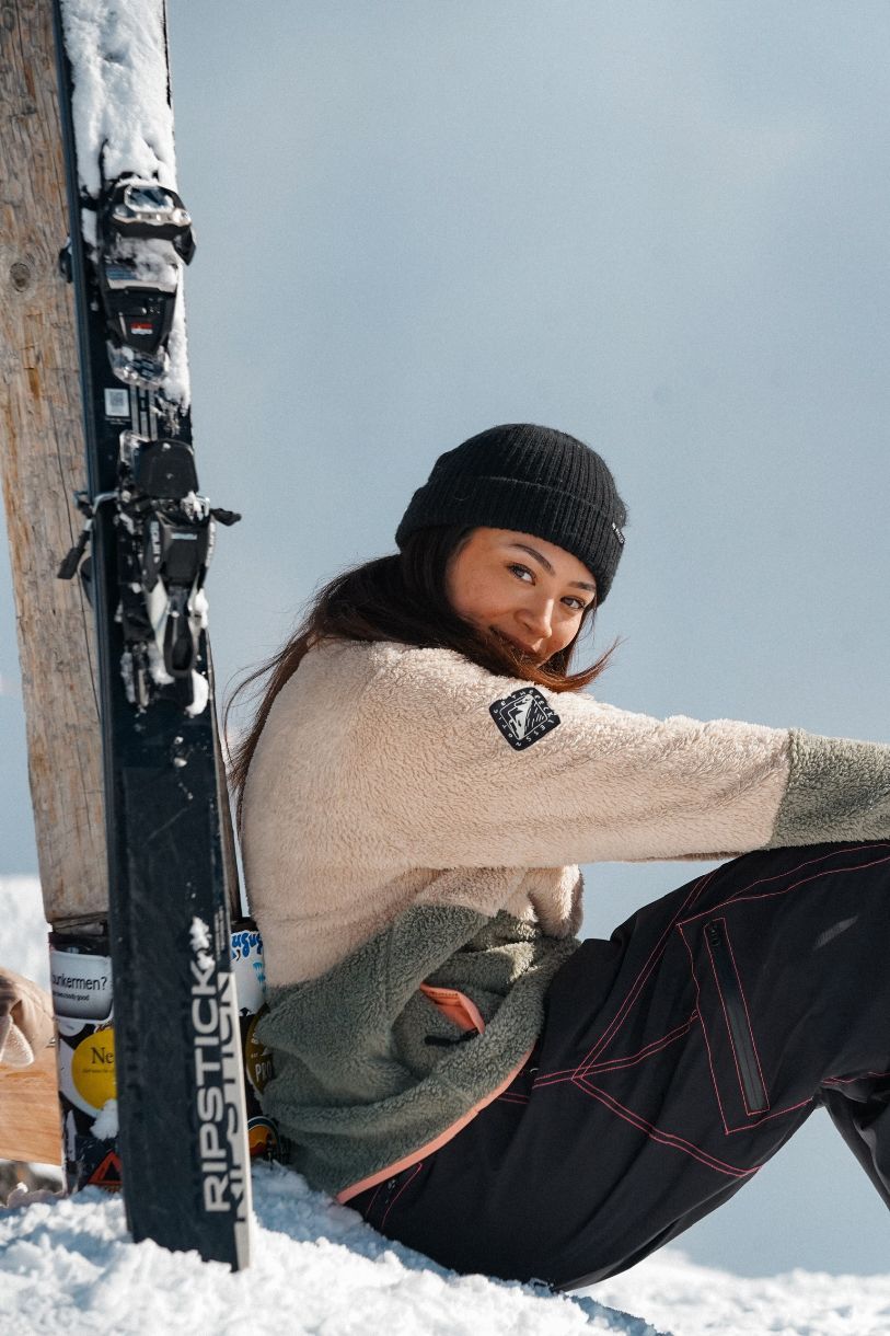 Chandail en fluffy fleece pour femme Encolure à boutons-pression avec 2 poches latérales zippées, 1 poche poitrine zippée Couleur : Sable, vert mousse et corail Coupe : décontracté 100% Polyester