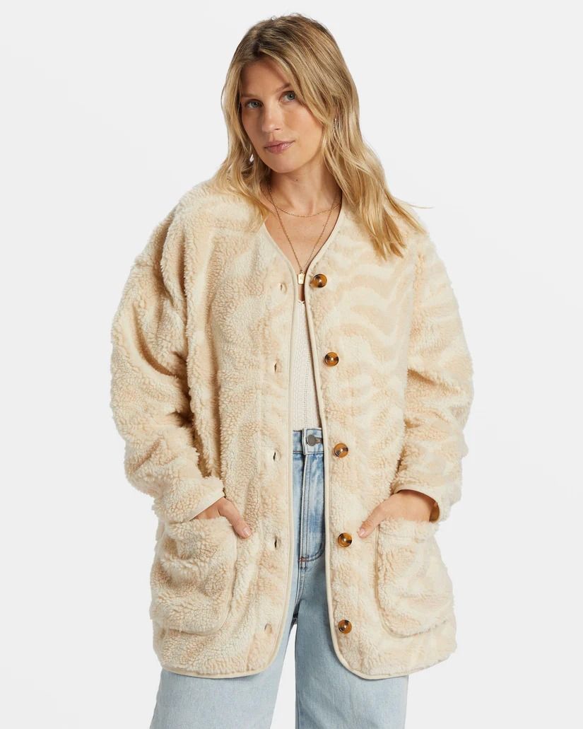 Confectionnée en polaire d'épaisseur moyenne, la veste polaire Fireside Cozy présente une coupe oversize confortable avec des boutons sur le devant et des poches pratiques à la taille. Avec son motif, elle est idéale pour compléter vos tenues quotidiennes. Présentée ici dans le coloris White Cap. Tissu polaire douce et confortable de poids moyen. Coupe surdimensionnée. Col en V. Fermeture boutonnée sur le devant. Poches à la taille. Barre métallique. Matériaux 100% polyester