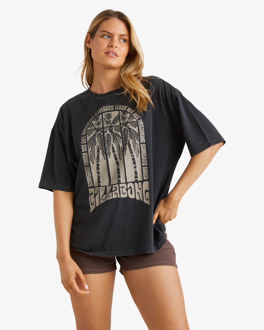 Jersey en coton Coupe oversize Col rond Manches courtes Sérigraphie à l’encre douce au toucher