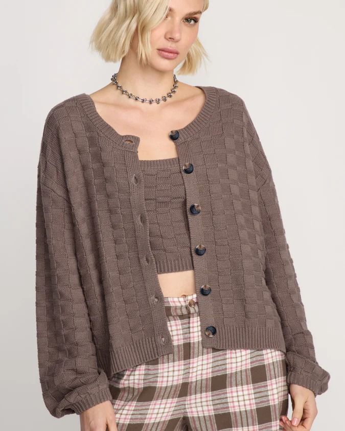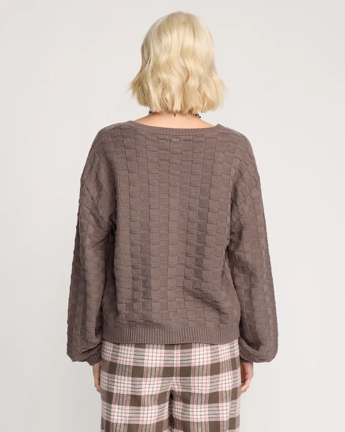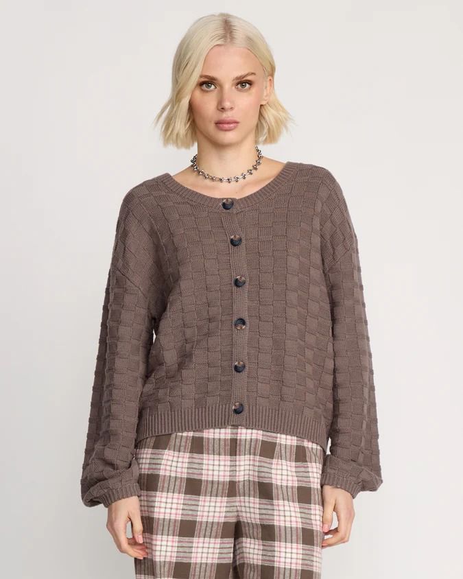 Cardigan Snug Lyfe pour femme par Volcom. Pull en tricot texturé fantaisie 60 % coton / 40 % acrylique 7GG