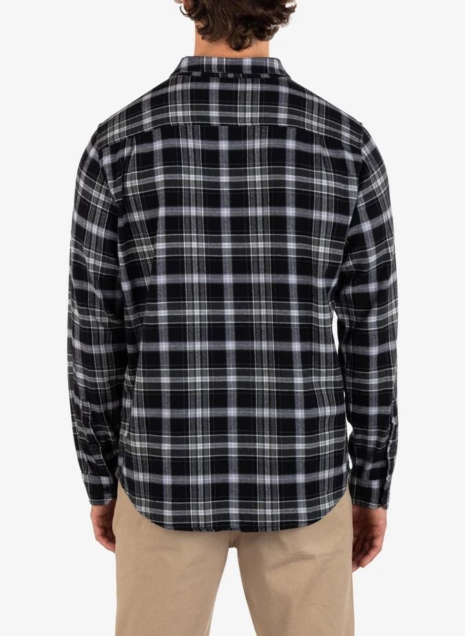 Flanelle ultra douce 100 % coton biologique Boutons en poly recyclé Poche plaquée sur la poitrine gauche avec détail de point triangulaire renforcé Plis à l'empiècement du dos