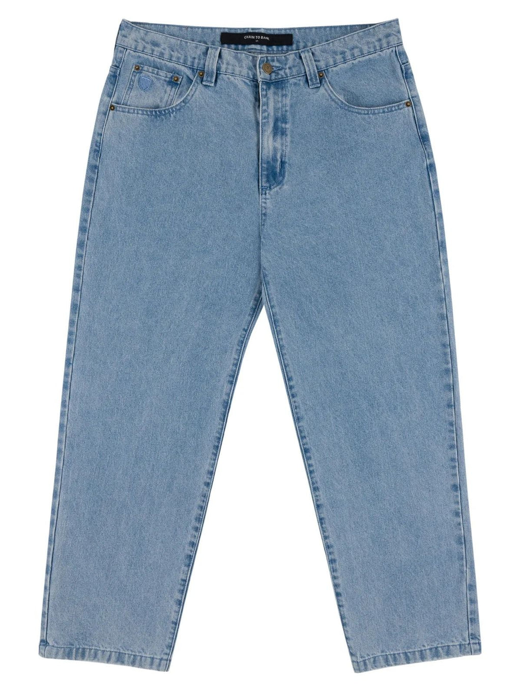 -PANTALON EN DENIM DE COTON -COUPE DÉCONTRACTÉE -POCHES EN COTON AVEC LOGO IMPRIMÉ -CONSTRUCTION À 5 POCHES -BRAGUETTE À FERMETURE ÉCLAIR -TIGE ET RIVETS -PATCH EN CUIR GAUFRÉ -ÉTIQUETTE DRAPEAU CTB -BRODERIE D'ÉCUSSON CTB