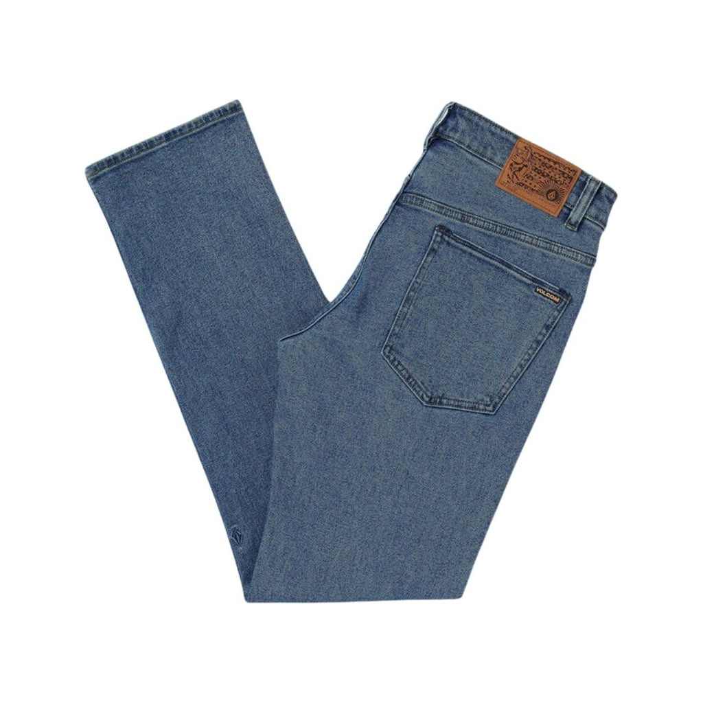 Fabriqué à partir de coton 100 % doux mais durable, ce denim est même fabriqué avec les techniques d'économie d'eau de Volcom. 99 % coton / 1 % élasthanne Coupe droite moderne avec ouverture de 16 et entrejambe de 32 - taille 32 x 32 Denim indigo extensible léger à lavage moyen avec une surpiqûre vert doré