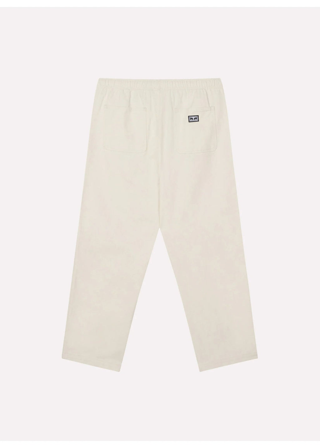 ELASTIC WAIST DENIM PANT FULL ELASTIC WAISTBAND WITH ROUNDED DRAWCORD. FAUX FLY SIDE SEAM FRONT POCKETS BACK PATCH POCKETS OBEY EYES LABELING AT BACK WEARER’S RIGHT POCKETS 100% COTTON 13.5 OZ 17.5” LEG OPENING STRAIGHT LEG