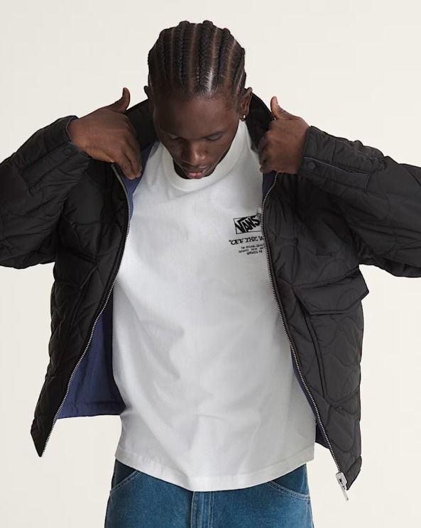 Dotée d'un revêtement déperlant pour vous protéger des intempéries, la veste réversible Skate Garage est prête à vous accompagner au skatepark. D'un côté, elle est composée d'une toile avec un col et une poche en velours côtelé, de l'autre d'un sergé matelassé avec deux poches pour vous permettre de la changer et de la retourner selon vos besoins. Sa coupe ample offre une grande liberté de mouvement et des possibilités de superposition optimales. Elle est ornée d'un logo Vans skateboard pour une touche d'originalité.