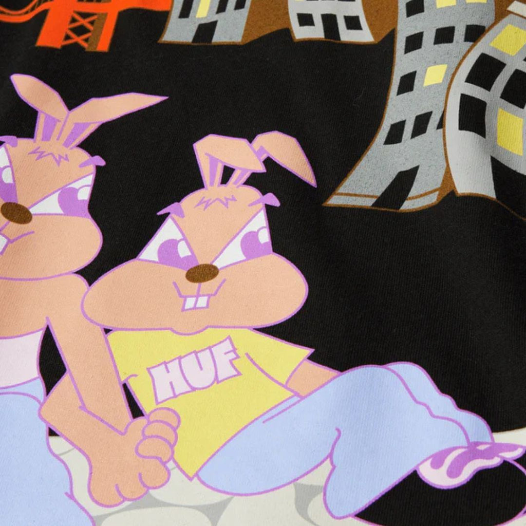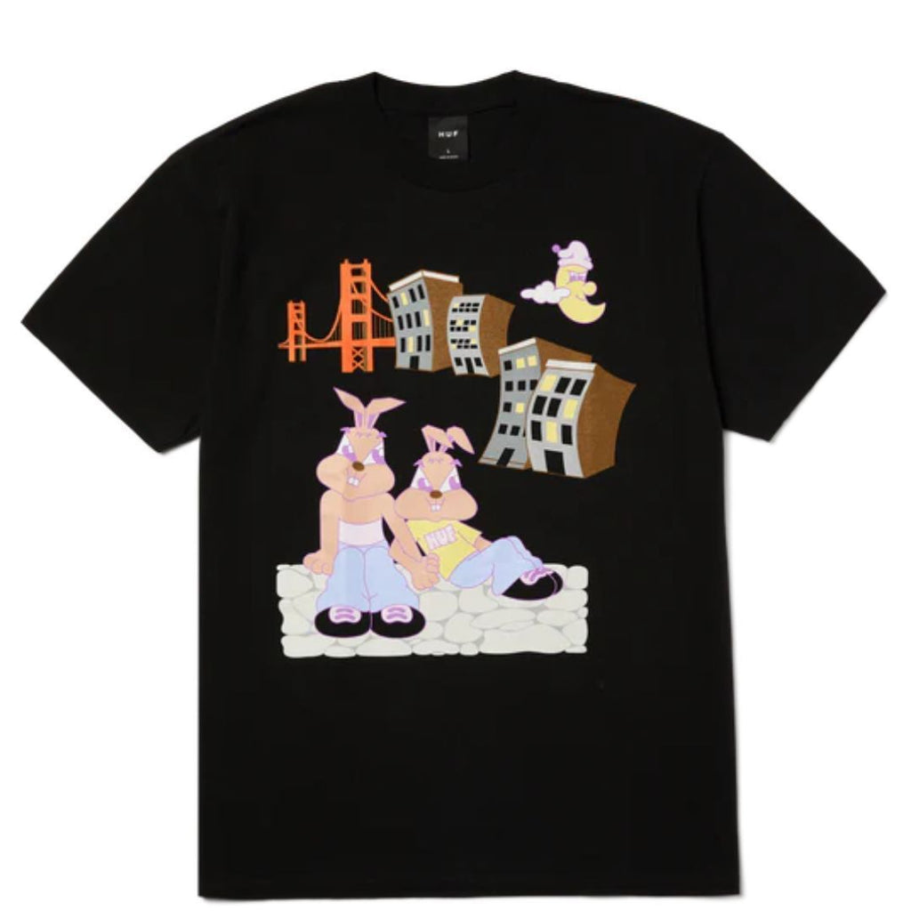 • T-shirt à manches courtes 100 % coton • Illustration imprimée sur le devant • Étiquette tissée HUF à l'intérieur du col
