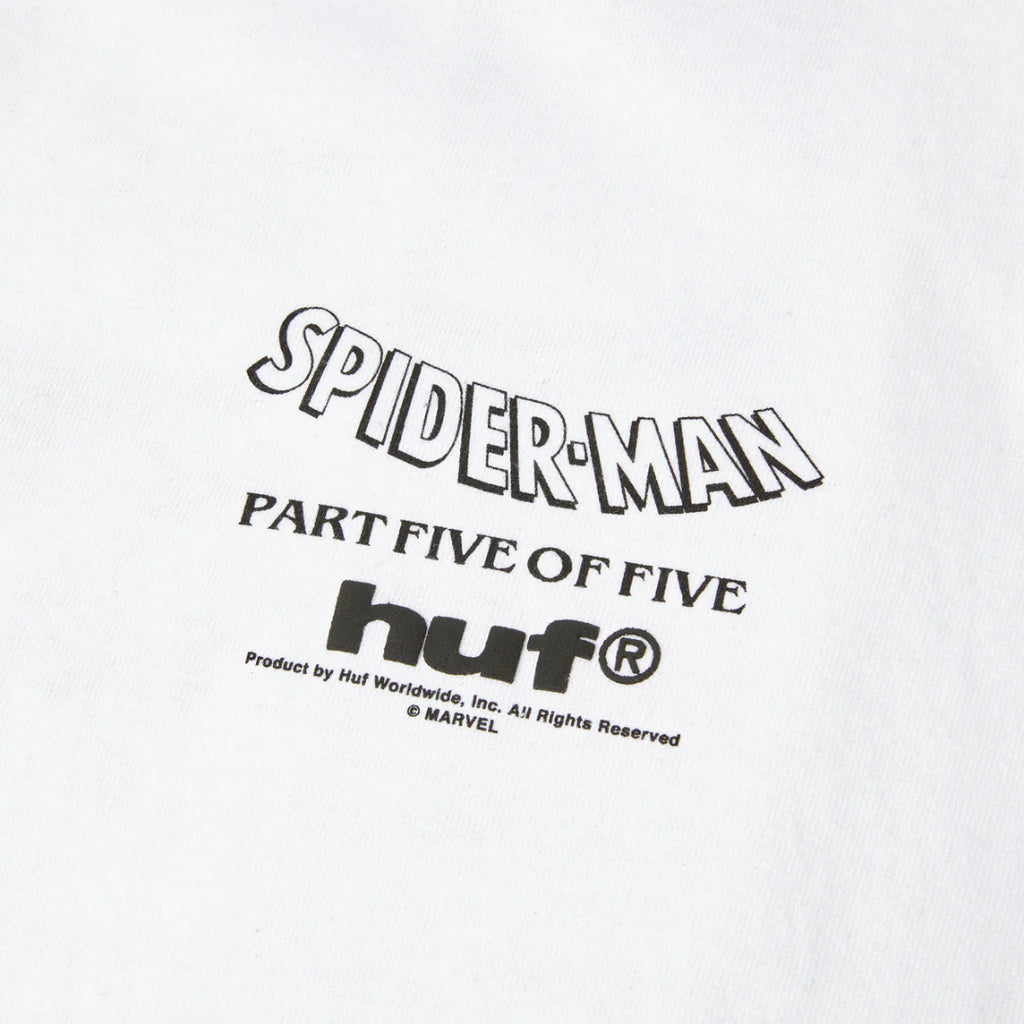 • T-shirt à manches courtes 100 % coton • Illustration imprimée à l’avant et à l’arrière • Détail en impression gonflante sur tous les logos HUF • Éléments co-marqués HUF x Marvel