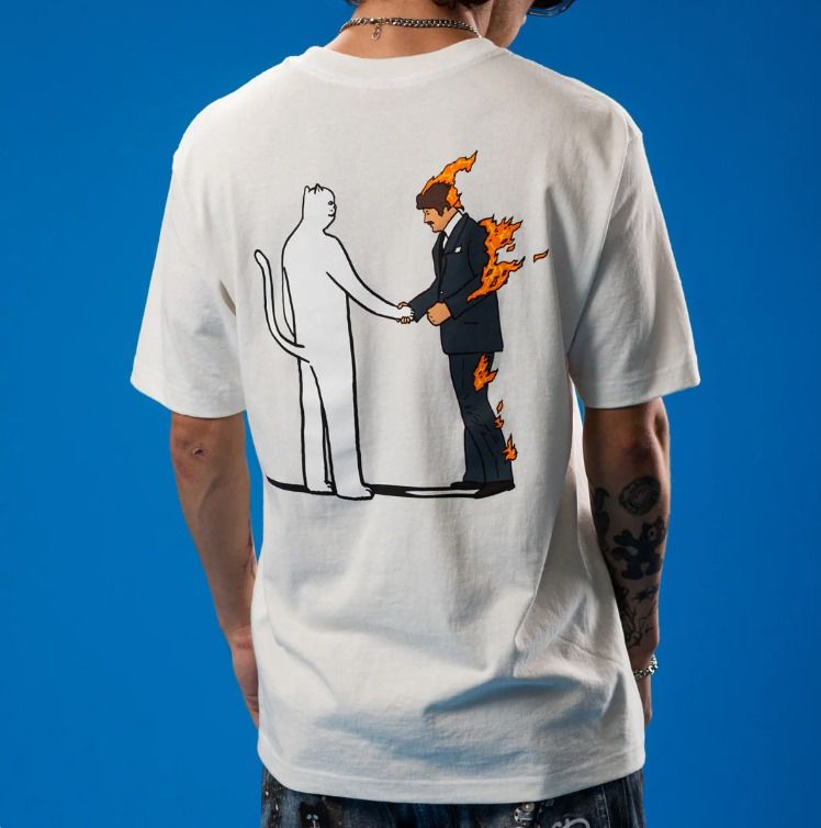 T-shirt Ripndip Burn 100 % coton Tissu 240 GSM (épais et résistant) Étiquette imprimée Ripndip au col Graphiques « Burn » sérigraphiés à l’avant et à l’arrière