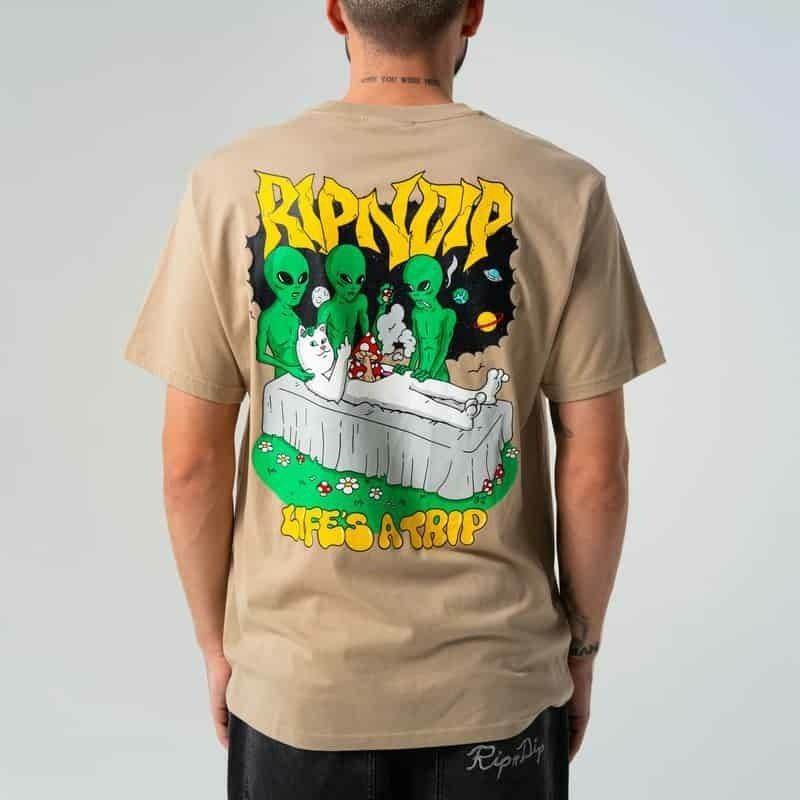 Nouveaux t-shirts vierges personnalisés 100 % coton 180 GSM ! T-shirt plus doux, plus épais et plus durable Nouvelle étiquette noire Ripndip au col Graphismes de meilleure qualité et plus éclatants Impression du motif Harvest à l'avant et à l'arrière