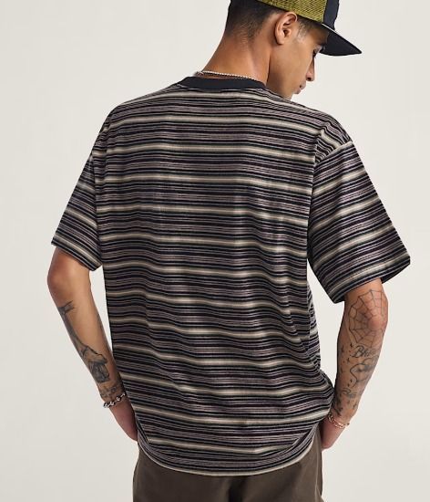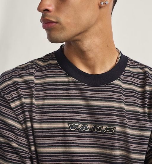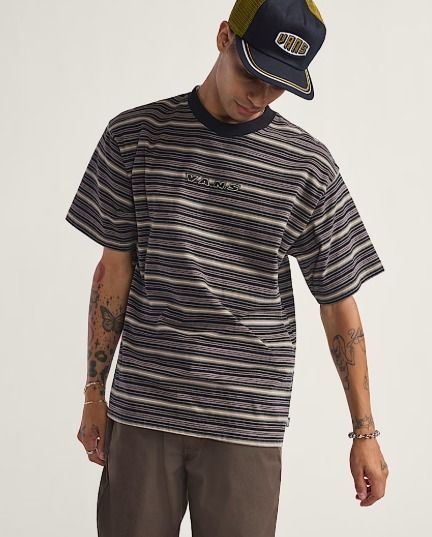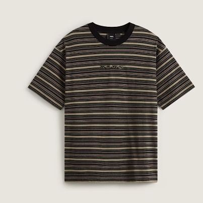 T-shirt à rayures Cameron pour homme par Vans. Col ras du cou classique pour un port facile Manches courtes pour un look décontracté Motif à carreaux jacquard pour une texture subtile Illustration brodée sur la poitrine 100% coton, 220g