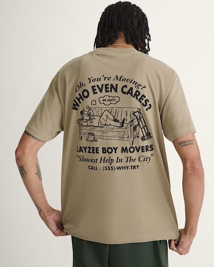 Le coton respirant rencontre le style décontracté dans un t-shirt à col rond classique. Prenez votre temps avec le t-shirt Moving Co, qui met en avant l'équipe de déménagement la plus paresseuse, avec une sérigraphie durable sur le devant et le dos. Restez décontracté avec ses manches courtes pour un style décontracté au quotidien. Œuvre d'art sérigraphiée Col ras du cou classique à porter au quotidien Le col côtelé ajoute de la structure et de la forme 100% coton