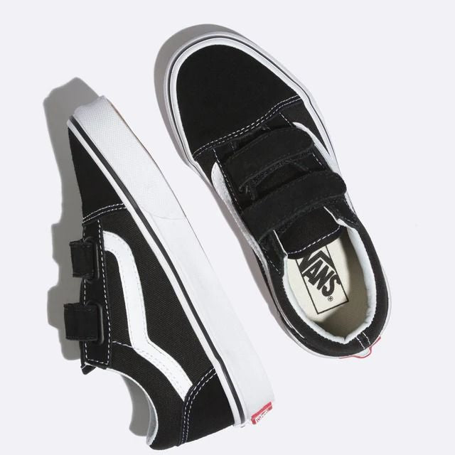 Le Old Skool V Suede/Canvas réinvente notre soulier à Sidestripe emblématique en remplaçant les lacets traditionnels par trois lanières à velcro. Doté d’une tige caractéristique en suède et en toile, ce modèle à tige basse garde son attrait classique, tout en offrant l’ajustement simple et solide qui assure un confort longue durée.