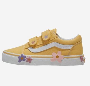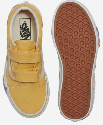 La Kids Old Skool V réinvente la chaussure emblématique Sidestripe en remplaçant les lacets traditionnels par des fermetures à double scratch. Fabriquée avec une tige en toile emblématique et ornée d'appliques florales sur les côtés, cette chaussure basse conserve son charme classique tout en offrant un chaussant facile et sûr pour un confort tout au long de la journée.