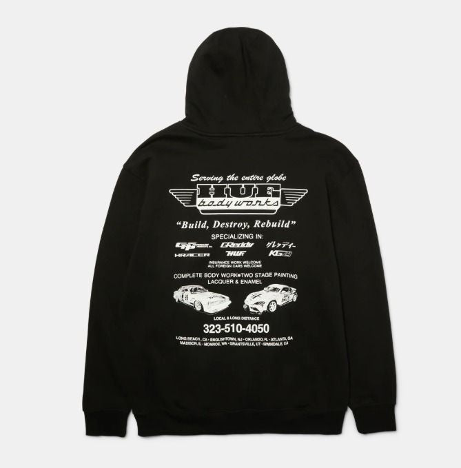 Dédié aux passionnés de voitures et aux ateliers qui les font rouler, le sweat à capuche HUF x GReddy Body Works présente une coupe standard et un visuel exclusif HUF Bodyworks.