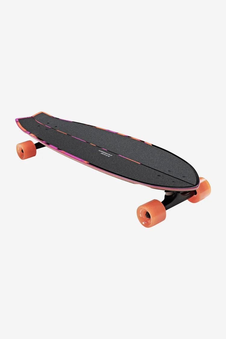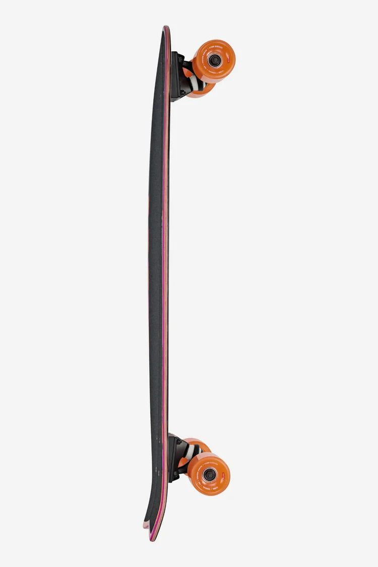 Le Chromantic - Sea Devil est un cruiser mi-long à queue d'hirondelle, mesurant 33 x 9,5 x 22,25 de largeur, construit en érable dur Resin-7 avec un concave et un kicktail moelleux, roulant sur des roues de cruiser coniques 78a et des trucks Tensor.