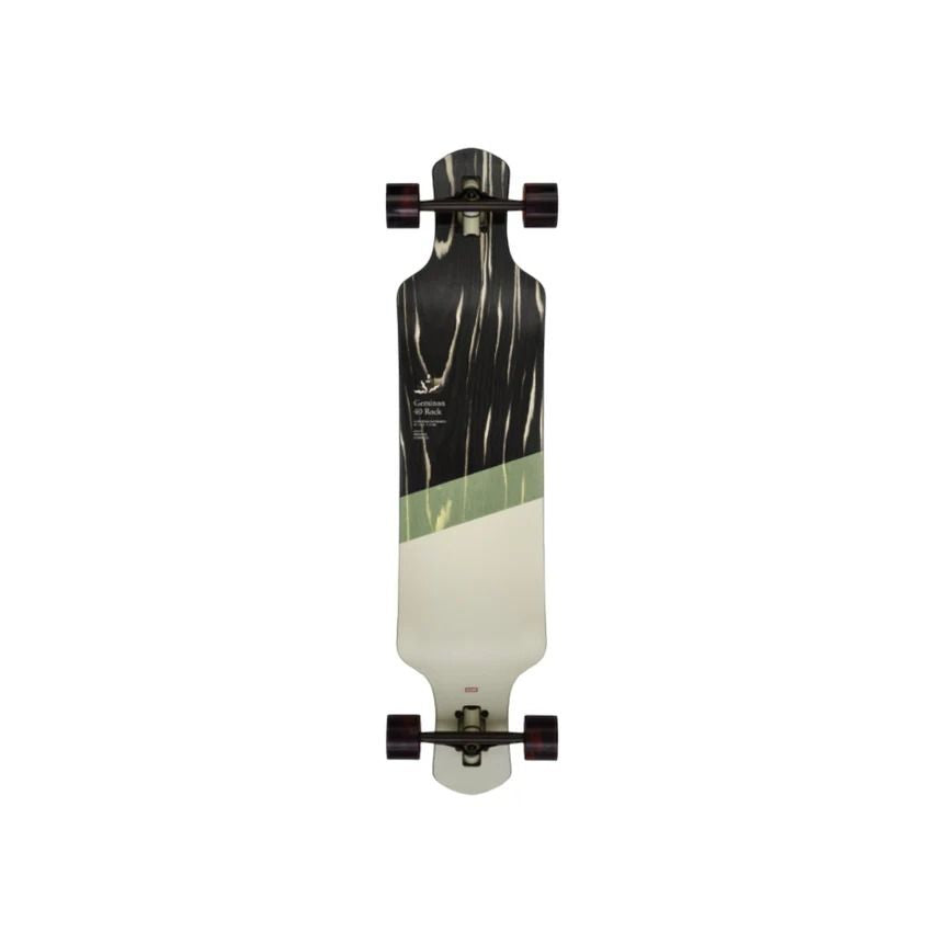Longboard symétrique, rockeré et cut-away, avec trucks drop-through. Le Geminon 40 Rock 40 en Macassar noir/Epitome présente un léger concave latéral et est construit en Macassar et érable dur. Détails et fonctionnalités